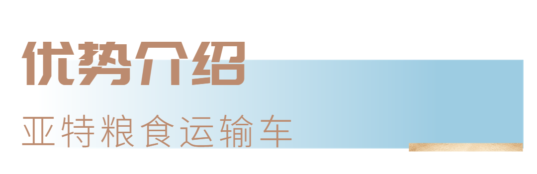 亞特糧食運(yùn)輸車制造精良,具有防水、防潮、防塵、防泄漏、不易腐蝕等特點(diǎn),在溫度、水分、氧氣等方面嚴(yán)格科學(xué)把控,為糧食的貯藏和運(yùn)輸提供了絕佳環(huán)境,大大降低運(yùn)輸過程中糧食的損耗,可以說是一個(gè)“行走的糧倉”。以科技之力,鞏固糧食根基,助力祖國鄉(xiāng)村建設(shè)。
